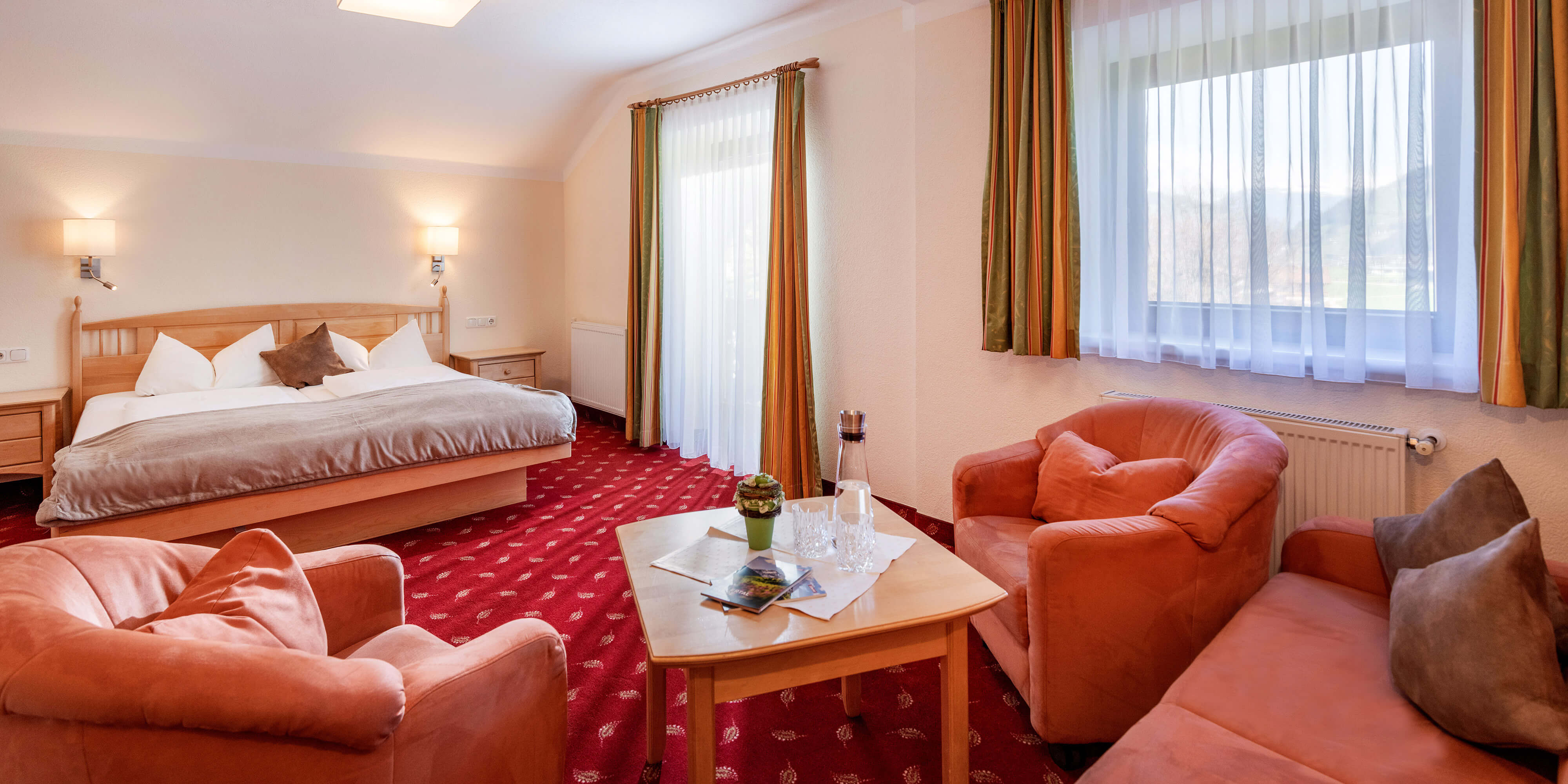 Die beiden liebenswerten Domizile verbindet unsere Naturoase mit Naturbadeteich, Hüttensauna, Kinderspielplatz und schönen Plätzen zum Erholen. Neben den schönen Zimmern und voll ausgestatteten Apartments, einem köstlichen Frühstücksbuffet, runden Fitnessraum mit Indoor-Tischtennis, wohlige Stuben, ein gutes Parkplatzangebot mit E-Ladestationen/Wallboxen, sowie großzügige Ski- und Abstellräume das hauseigene Angebot ab.