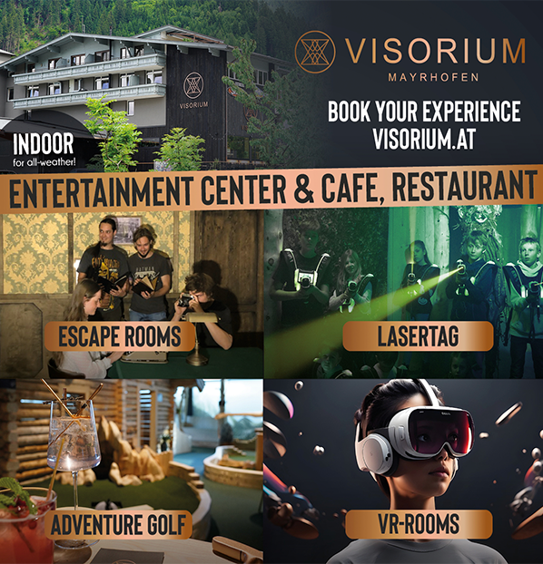 Entdeckt das Zillertal mit Escape-Rooms, Lasertag, Adventure Golf, VR-Rooms und Restaurant mitten in Mayrhofen. Visorium - das Indoor-Freizeitzentrum bietet bei jeder Witterung Spiel & Spaß für die ganze Familie!